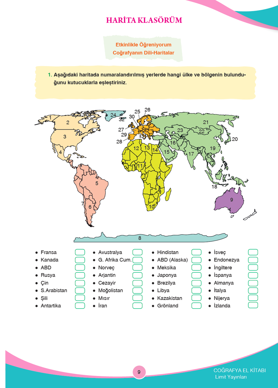 -HARİTA KLASÖRÜM ÇALIŞMASIYLA DÜNYA VE TÜRKİYE’YE AİT SINIFLAMALAR YAPILMIŞ, ÖĞRENCİLERE MEKÂN BİLGİSİNİ ÖĞRETMEK AMAÇLANMIŞTIR.