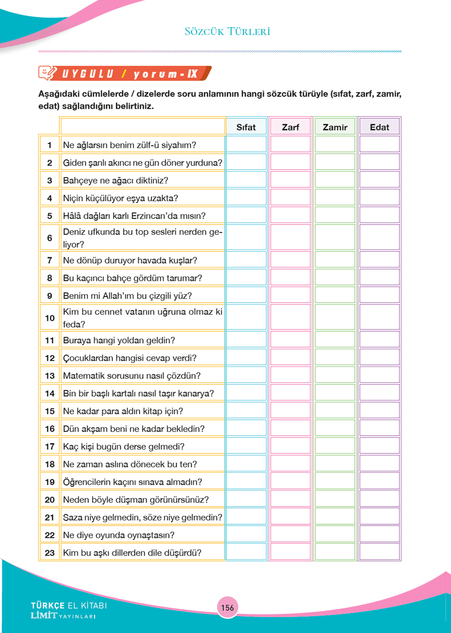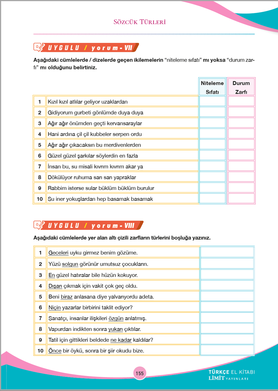 Uygulamalara (Uyguluyorum) yer verilmiştir.